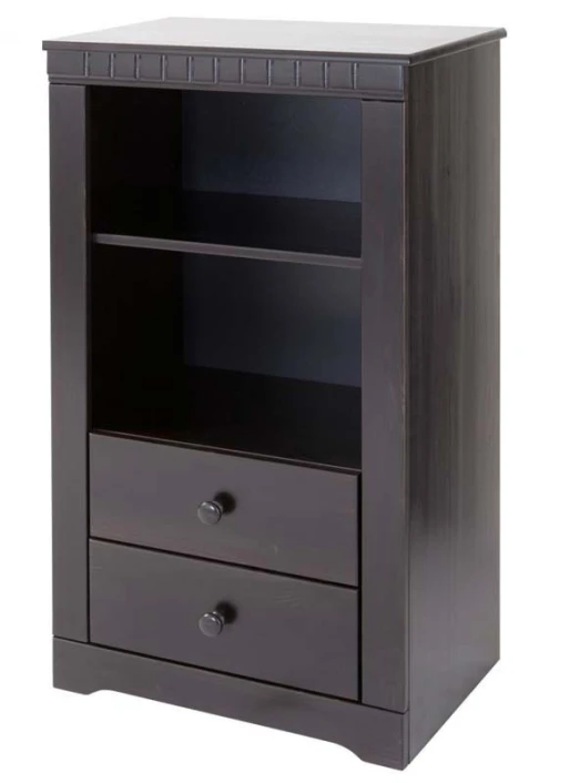 Flott reol i et moderne og elegant design. Claire reolen er laget av furutre som etterfølgende er blitt lakkeret i en mørk farge. Reolen har to skuffer og en hylle, hvor du kan pynte med det du ønsker. Størrelsen er god til de mindre rom hvor den ikke fyller meget.