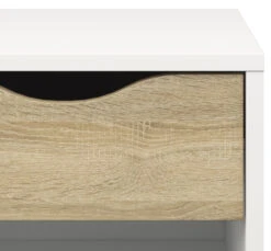 Dette er et hvitt nattbord med et fint og minimalistisk design. Bordet har et moderne uttrykk, med elegante detaljer i eiketre. På unoliving finner du sengeramme, kommode og garderobeskap i samme serie. Kombiner du flere møbler i samme serie får du en mer helhetlig og gjennomført innredning av soverommet.