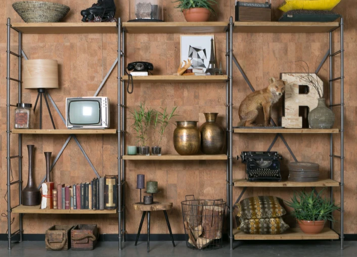 Jernreol fra Dutchbone i vintage stil. Iron reolen har en jernramme og de fem hyllene er i massivt tre og gir reolen et unikt og særpreget uttrykk.