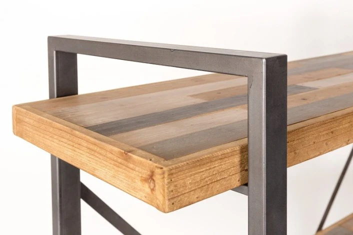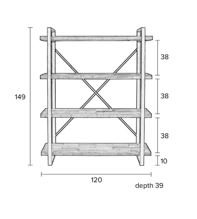 Homii har designet denne vakre og meget dekorative Joy reol til boligen. Joey reolen kan brukes overalt i hjemmet, da reolen har en fin størrelse til diverse pynt og opbevaring. De fire hyller er laget av furutræ med en vannbasert finish i forskjellige nøytrale nyanser. Rammen på reolen er fremstillt av gråt pulverlakkert jern.