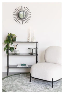 Ryan jernreolen er lavet i et rustikt look, der matcher den nordiske indretning fint. Det rustikke look skaber en personlig og varme i boligen. Jernreolen er fremstillet af pulverlakeret stål med et rustent udtryk. Jernreolen står på hjul, så du fint kan flytte reolen. Ryan jernreolen indeholder to skuffer til opbevaring. Derudover indeholder reolen fire hylder med kant, så du kan pynte den med personlige billeder, lysestager, planter eller hvad du måtte ønske.