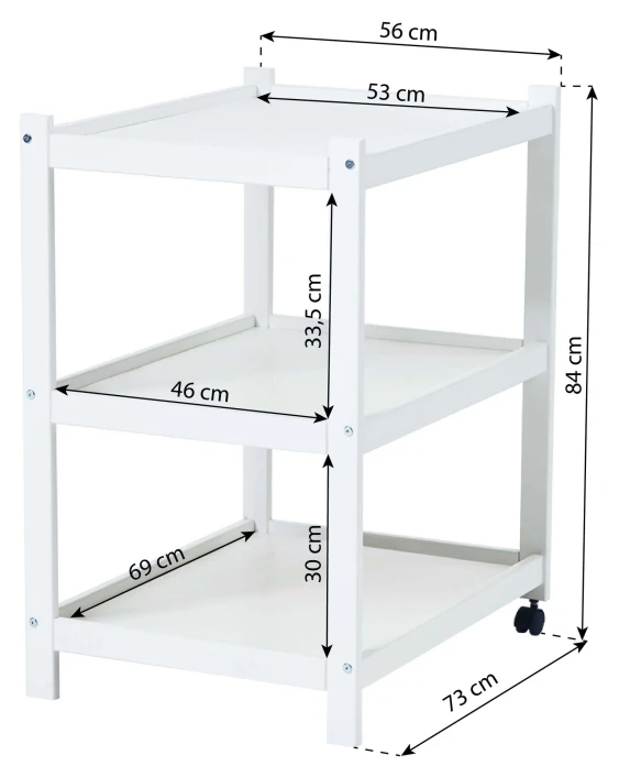 IDA Stellebord m/reol er et lite, praktisk stellebord med 2 hyller og god oppbevaringsplass. Det kjempefine stellebordet har et bord til stellepute og 2 hyller. Stellebordet m/reol står på hjul og er lett å flytte rundt i rommet.