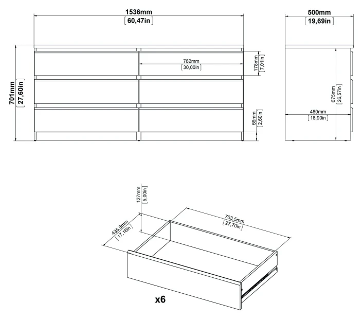 Naia Kommode – Hvit Ask M/6 Skuffer