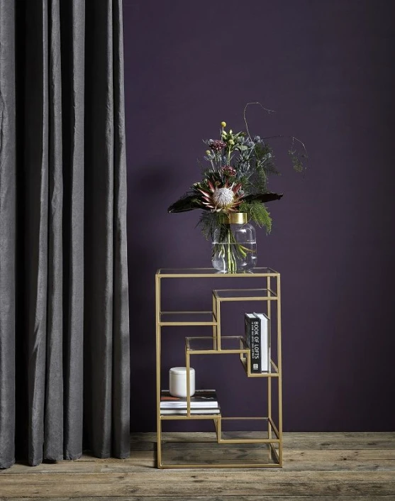 Utrolig vakkert, skulpturel og meget dekorativ display fra danske Nordal. Dette display har et elegant, eksklusivt og moderne design. Displayet er fremstillet av metall som er malet i en gull farge. Hyllene på displayet er fremstillt av glass som har et lett uttryk. Bruk displayet i stuen, på rommet eller entréen hvor du kan pynte med diverse bøker, magasiner, vaser og figurer. Dette produkt er delvist håndlaget, og derfor kan uregelmessigheter samt variasjoner i farver, finish og størrelser forekomme, som er en del af produktets unikke look.