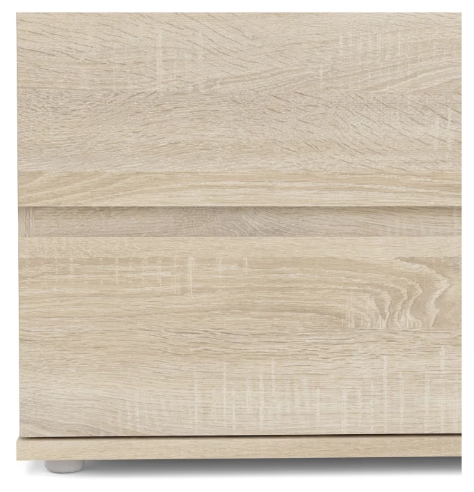 Fin og moderne kommode i lyst tre. Kommoden har fire brede skuffer i samme størrelse, samt en litt mindre skuffe øverst. Møblet passer med sitt enkle design inn i ethvert hjem.