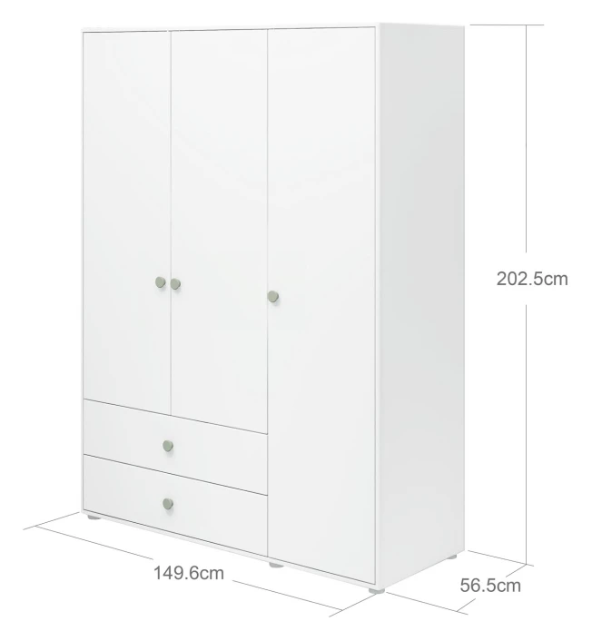 Roomie Garderobeskap M. 3 Dører – Grønn/Hvit