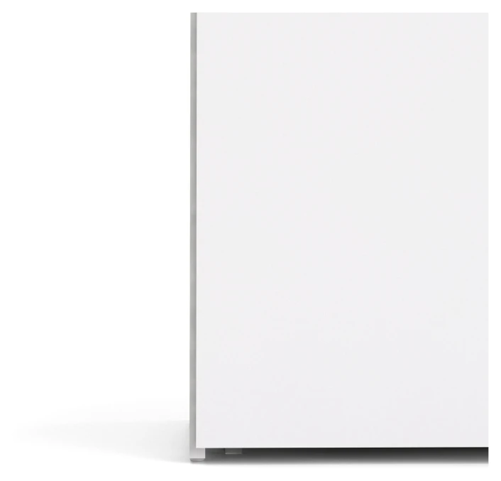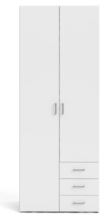 Hvidt garderobaskab med to skabslåger og tre små skuffer i den ene side. Skabet har et flot og enkelt design, som passer ind i alle hjem. De flotte greb fuldender skabets minimalistisk design.