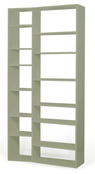 Moderne og stilfull grå bokreol. Med denne reolen er det enkelt å få plass til hele boksamlingen. Den bølgede» profilen gir møbelet et spennende uttrykk som med sikkerhet gir noe ekstra til innredningen.»