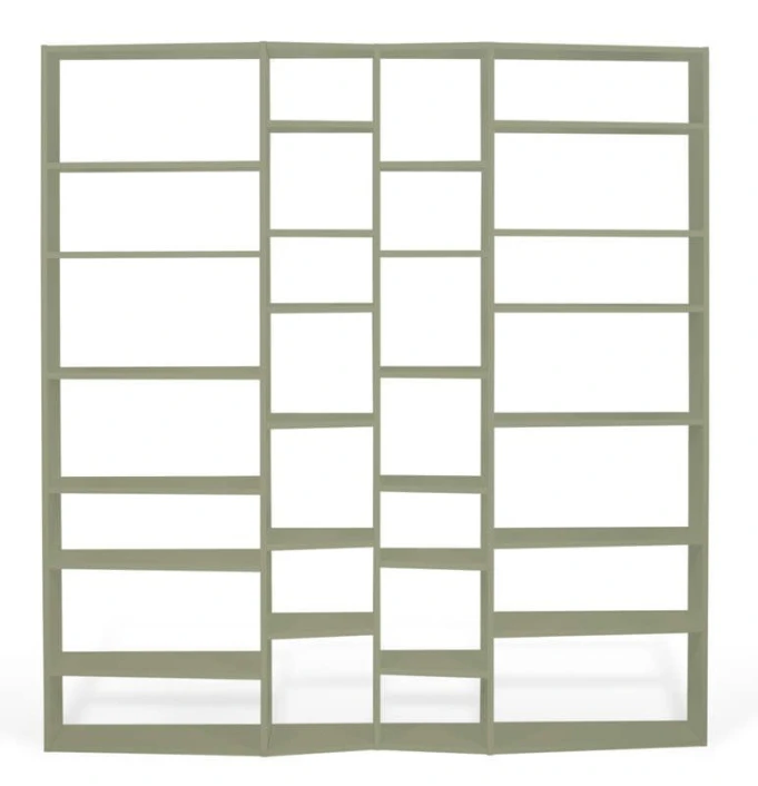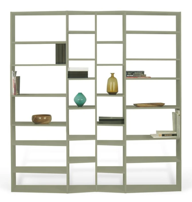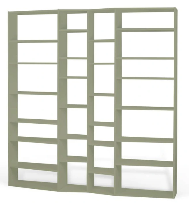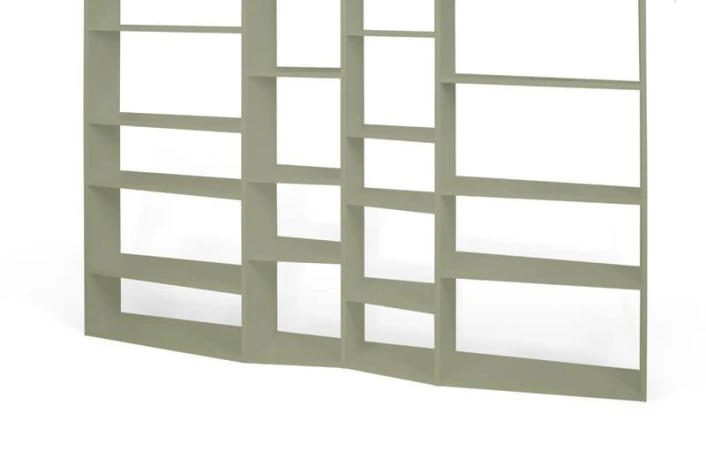 Vakker stor bokreol i grå med 28 oppbevaringsrom i ulike størrelser. Med denne reolen er det enkelt å få plass til hele boksamlingen. Den bølgede» profilen gir møbelet et spennende uttrykk som med sikkerhet gir noe ekstra til innredningen.»
