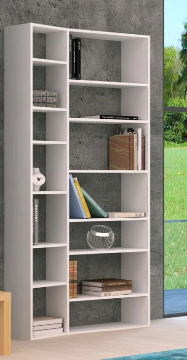 Moderne og stilig hvit bokreol. Med denne reolen er det enkelt å få plass til hele boksamlingen. Den bølgede» profilen gir møbelet et spennende uttrykk som med sikkerhet gir noe ekstra til innredningen.»