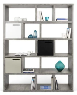 Reolen er et statement-møbel med de diagonale linjene i en frisk blå farge og fem romslige hyller i et naturlig eikelook. Det ser nesten ut som at det er bevegelse i reolen på grunn av det spennende diagonale designet. Flott og annerledes reol som gir et hvert rom farge og liv.