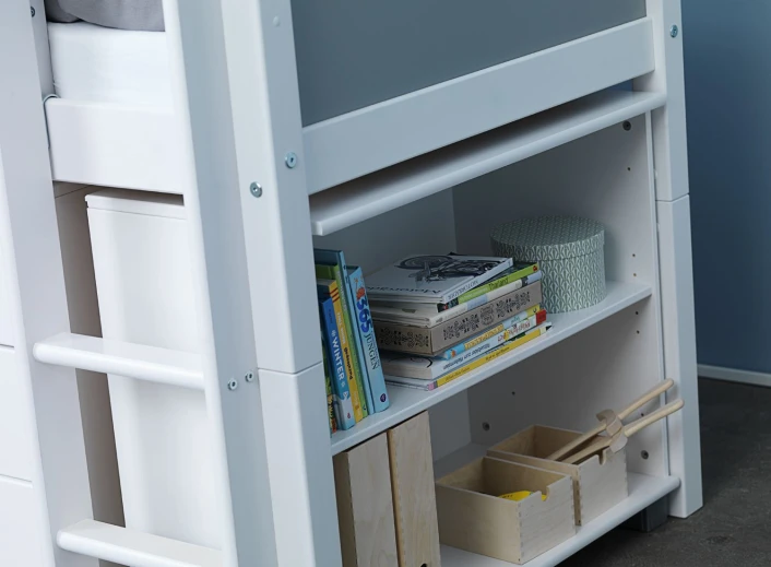Enkel hylle modul laget av det anerkjente, danske brand FLEXA. Nordic Hylle Modulet er fremstilt i hvitmalet furutre, og består av to praktiske hyller. Bruk sammen med flere moduler av samme slags for å skape et større møbel, eller bruk modulet alene, som for eksempel nattbord i soverommet eller på baenerommet. Som en kontrast til det eller helt hvite møbel, er føttene laget grå.