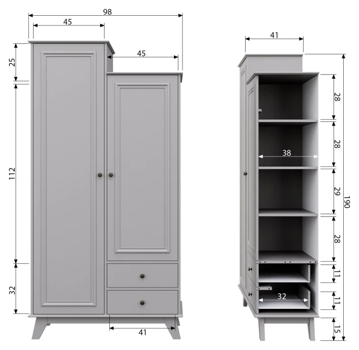 - 2 skuffer og 2 låger